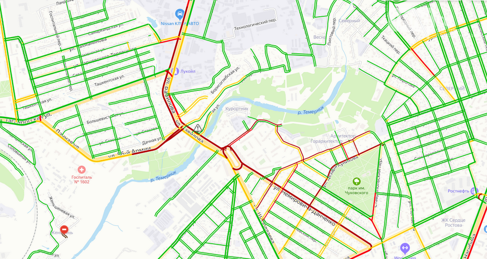 Всю проезжую часть заняла спецтехника, работающая на пожаре дома №24 по улице Вавилова. По данным сервиса «Яндекс.Пробки» движение по улице Вавилова парализовано в обе стороны. Затор начинается от переулка Радиаторного, из центра затор собрался уже в районе Комсомольской площади.