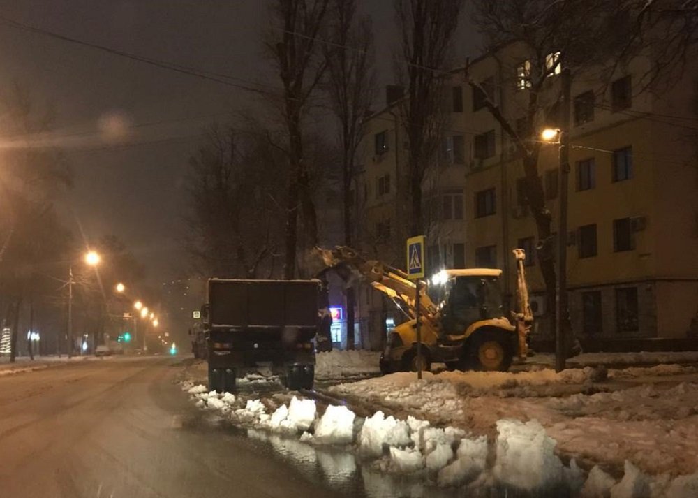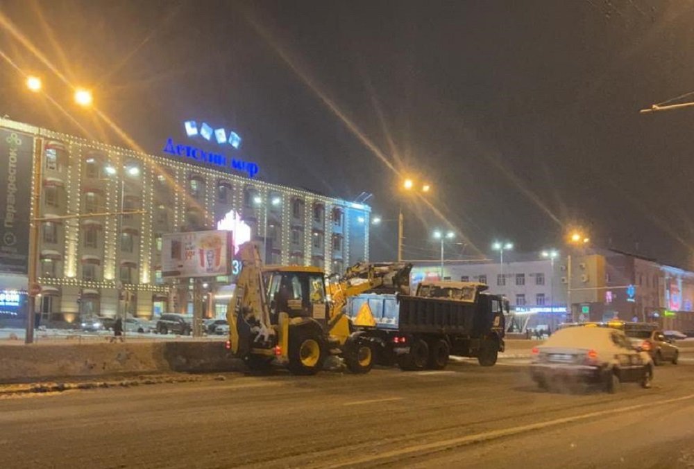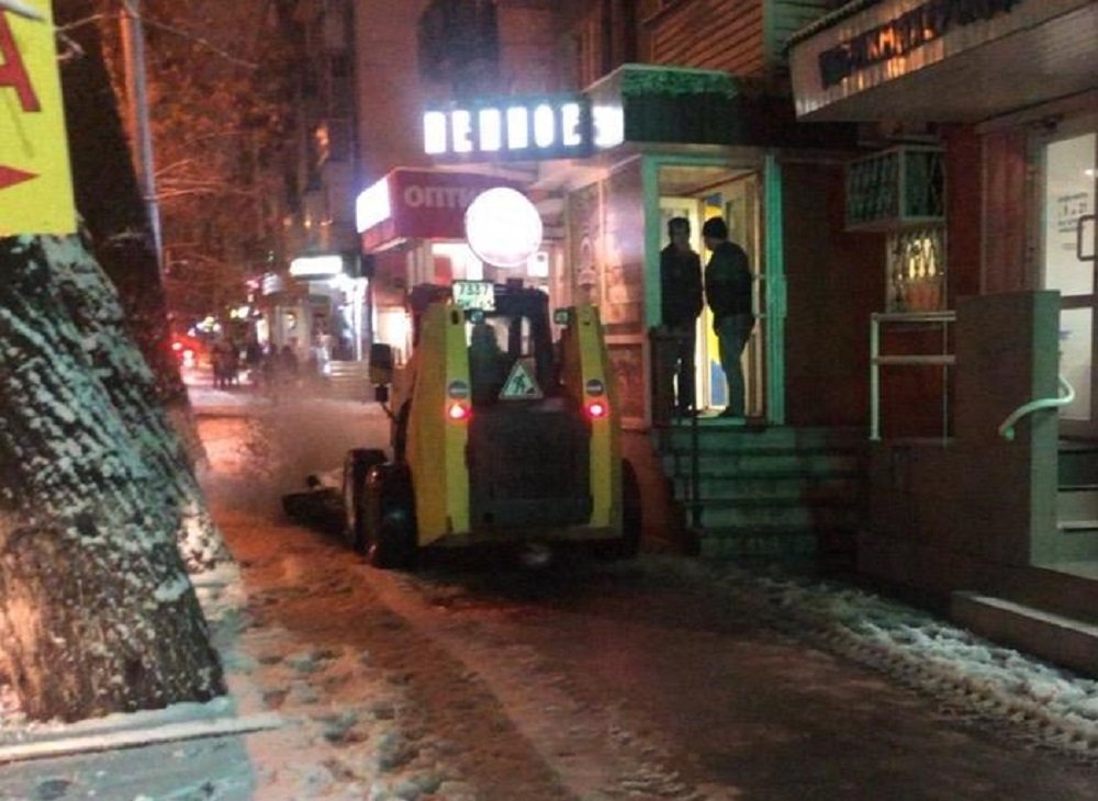 Убирать снег в городе вышли все дежурные бригады коммунальных служб города. Работы по расчистке снежных заносов на проезжих частях и тротуарах ведутся до сих пор.