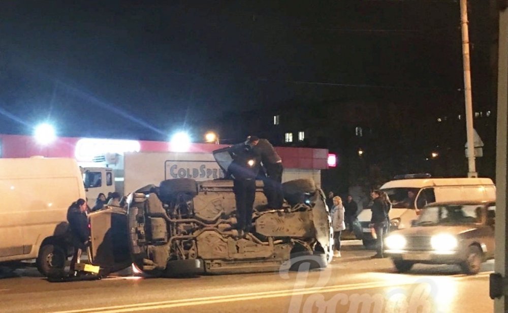 В районе дома №3 вчера, 21 марта, произошло ДТП. На дороге столкнулись две легковушки, от удара Opel перевернулся на бок, у второй иномарки оторвалось колесо.