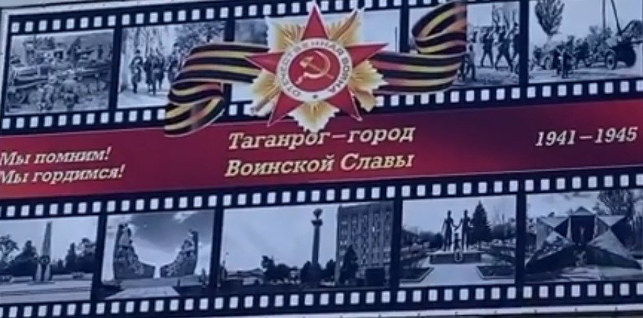 Баннер посвящен 75-летию Победы в Великой Отечественной войне и состоит из множества фотографий. Снимок баннера в социальной сети опубликовал таганрожец Андрей Роскошный. Мужчина заметил, что снимки на баннере не имеют никакого отношения к советским солдатам.