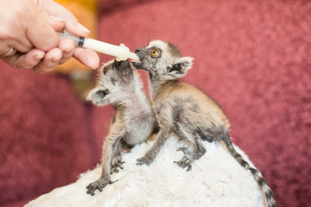 Родителями малышей стали лемуры Стивен и Флора. Новорожденным дали имена Фикус и Флокс. Новоиспеченная мамочка кормить детей отказалась, и забота о питании малышей легла на плечи зоологов.