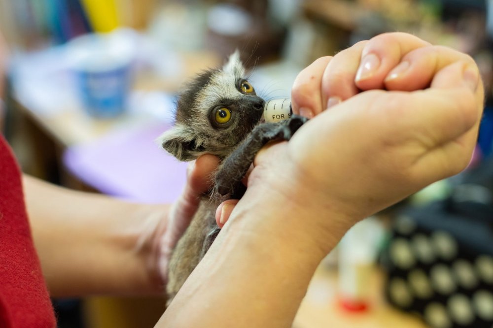 Малышей выкармливают сотрудники зоопарка.