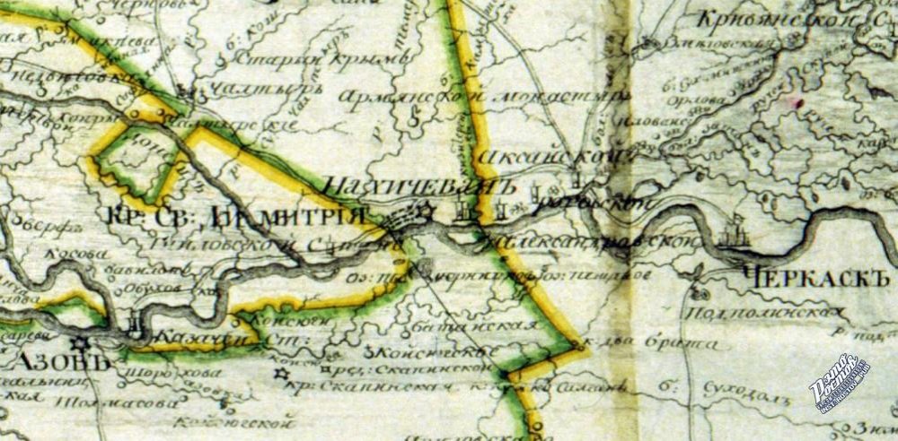 На фрагменте карты Области Войска Донскаго 1797 г. на ней запечатлены окрестности Ростова, а именно Крепость Святаго Димитрия. На карте крепость выглядит скромнее, чем ее представляют историки. Мужчина уверен, что карта правдива, а историки осознано преувеличивают.