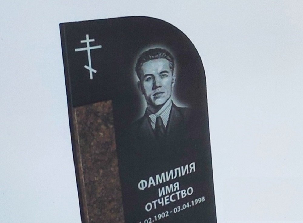 Компания по производству памятников на рекламном образце выбила снимок мужчины с советского плаката.
