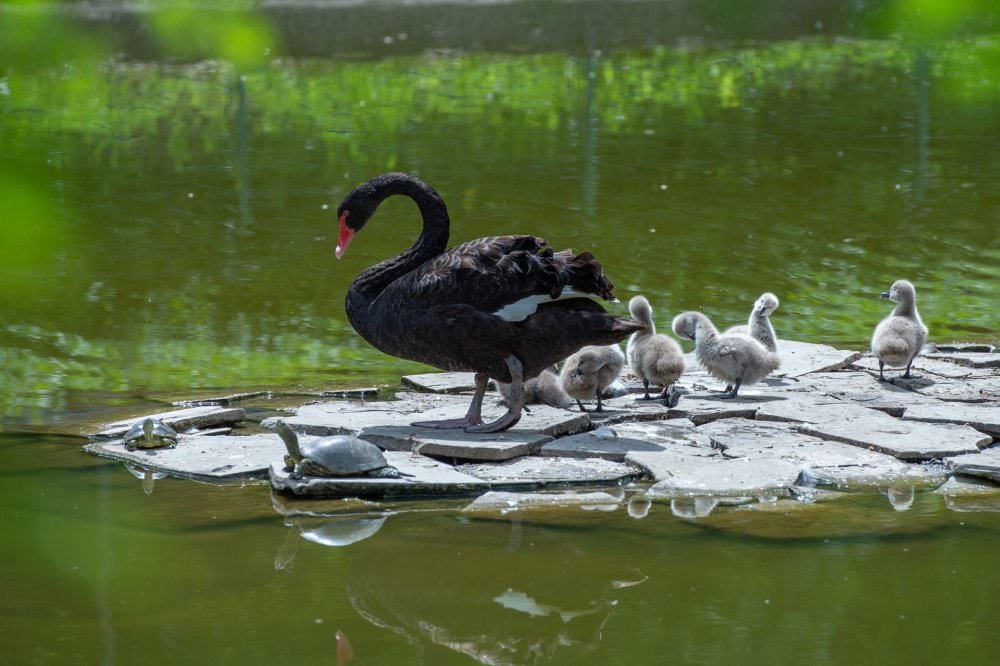 В зоопарке Ростова-на-Дону у пары черных лебедей вылупились шесть птенцов. Обычно самка откладывает от 4 до 8 яиц и высиживает их 35 суток. Птенцы вылупляются серыми и пушистыми, об этом сообщили в пресс-службе зоосада.