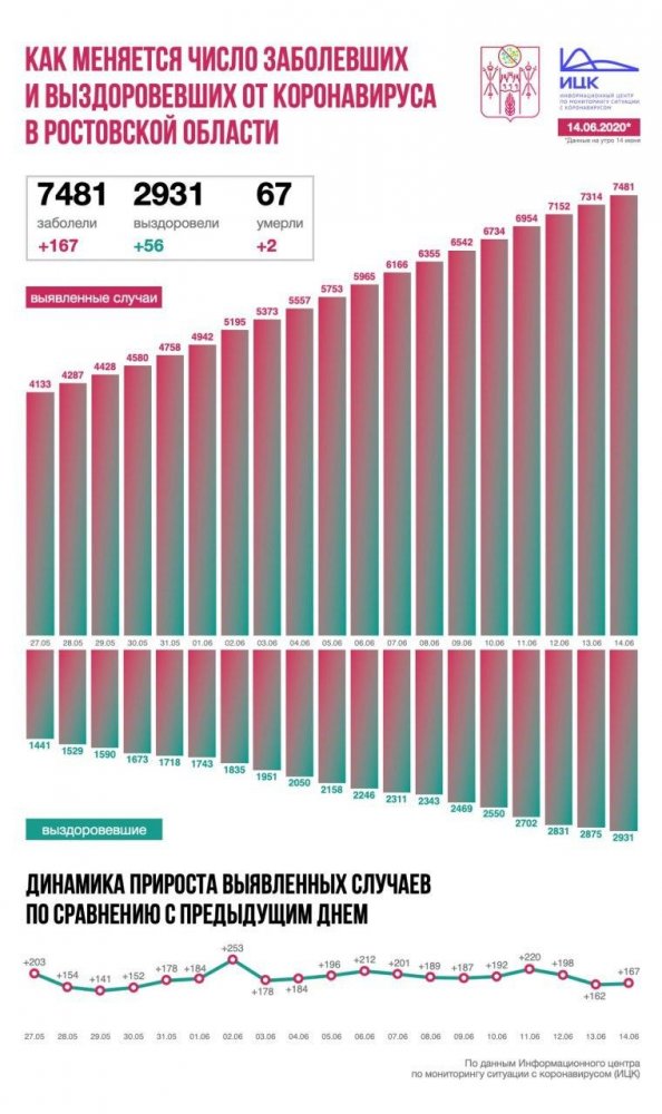 По сообщению информационного центра по мониторингу ситуации с коронавирусом, на утро 14 июня в регионе было выявлено еще 167 случаев заражения новой короновирусной инфекцией.