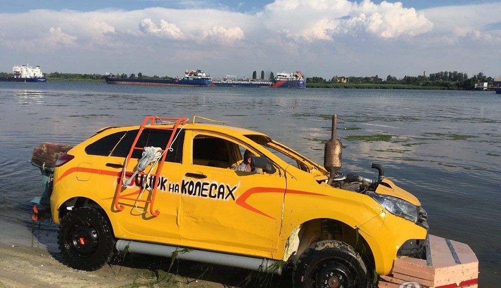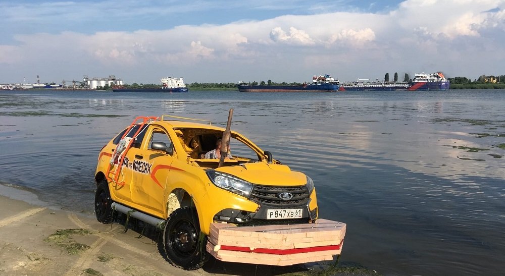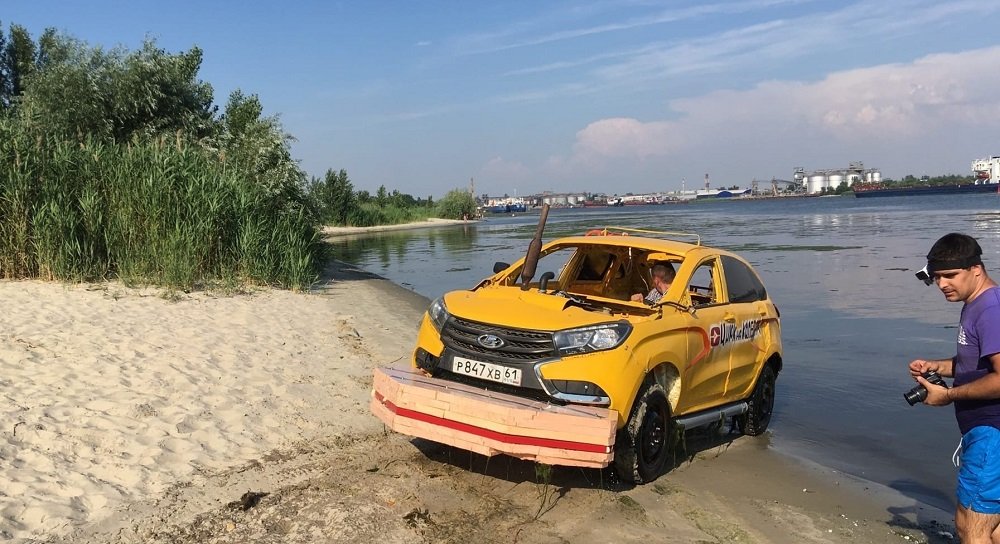 - На Дону возле Портовой сегодня тестировали Ладу X-Ray, переделанную под автомобиль-амфибию, - рассказал автор поста.