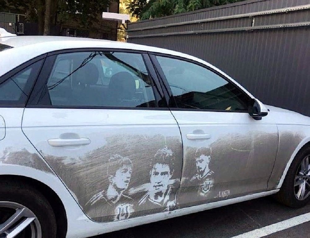 На крыльях грязного автомобиля художник нарисовал портреты футболистов ФК «Ростов». Несмотря на столь странный «холст» картина получила очень реалистичной и привлекающей внимание.