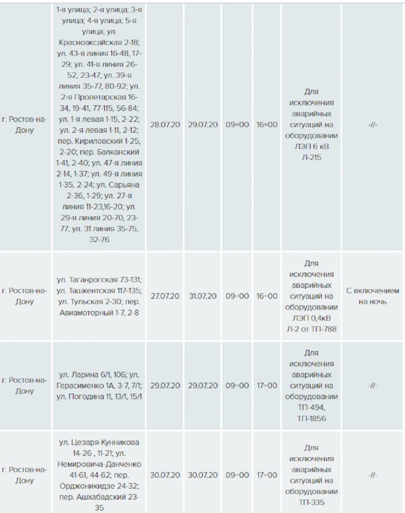 График работ обнародовала пресс-служба АО «Донэнерго».