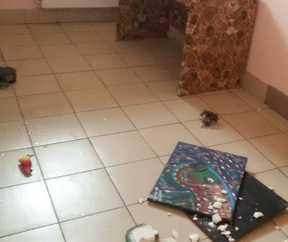 Неизвестные ворвались в подъезды и устроили погром: сорвали со стен картины, разбили горшки с цветами, а землю из-под растений разбросали по всему подъезду. Действовали вандалы явно спонтанно, часть горшков остались нетронутыми.