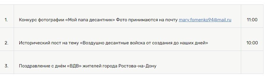 Всем, причастным к ВДВ, власти предложили отметить профессиональный праздник в режиме онлайн. В онлайн пройдут трансляции концертов и прочих мероприятий, которые подготовили парки Ростова.