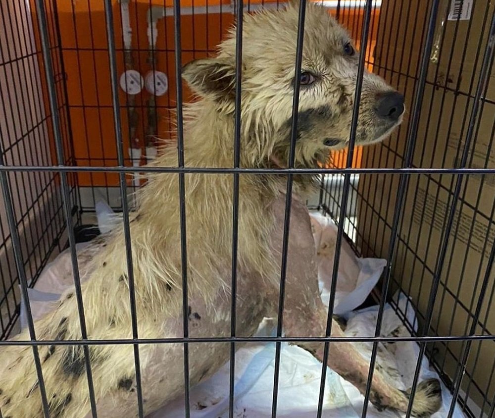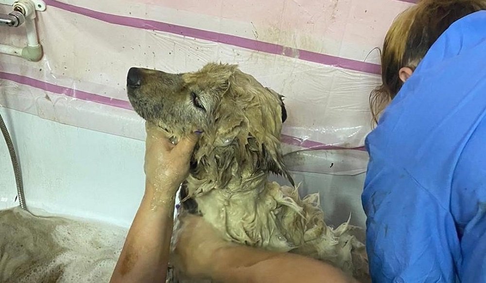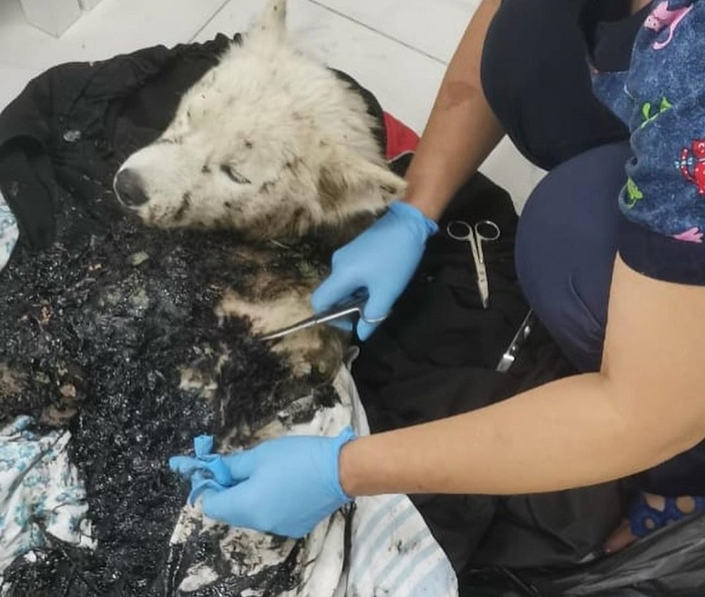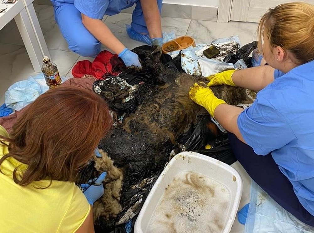 Ветеринары до двух часов ночи отмывали песика от мазута, об этом сообщили в паблике «Ростов Главный».