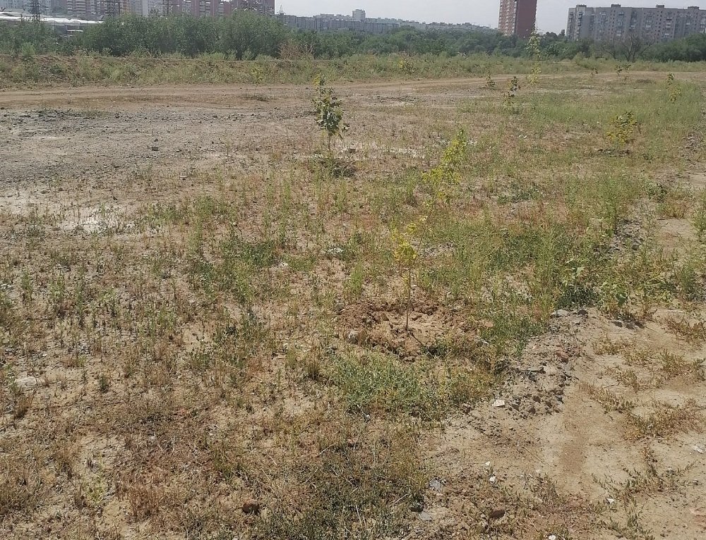 Ранее власти анонсировали создание на пустыре сквера с кленами. Саженцы высадили и даже изредка поливают, но за сорняками никто не следит.