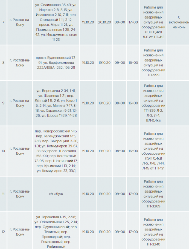 График плановых работ по предотвращению аварийных ситуаций на оборудовании обнародовала пресс-служба компании «Донэнерго».