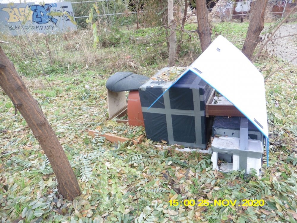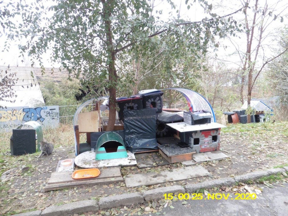 Неподалеку от Парамоновских складов неравнодушные горожане соорудили для бездомных котиков общежитие.