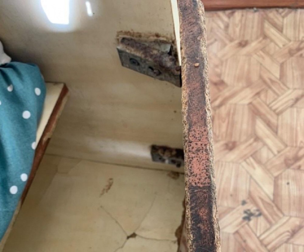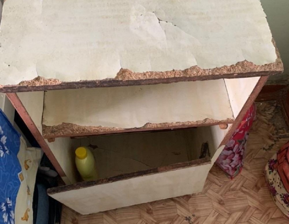 Условия пребывания пациентов в медучреждении оставляет желать лучшего. Мебель обшарпанная, по большей части сломанная, линолеум на полу рваный. Автор фото уточнил, что кадры были сделаны в хирургическом отделении.