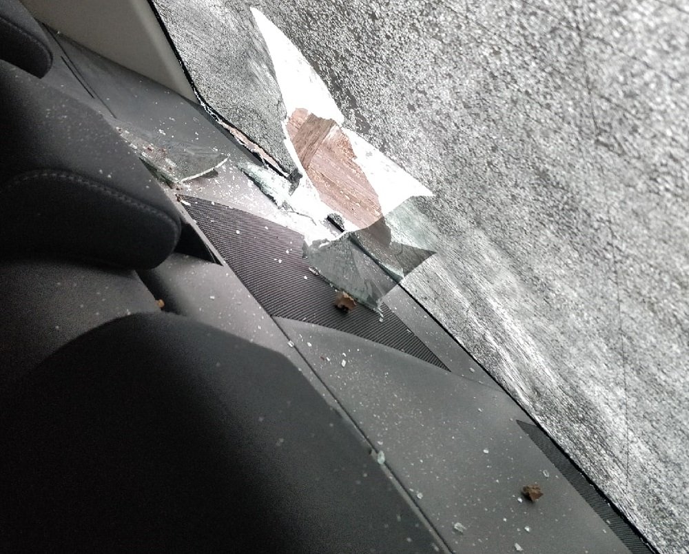 Кирпич неизвестный забросил в авто с силой, «снаряд» пролетел через весь салон.