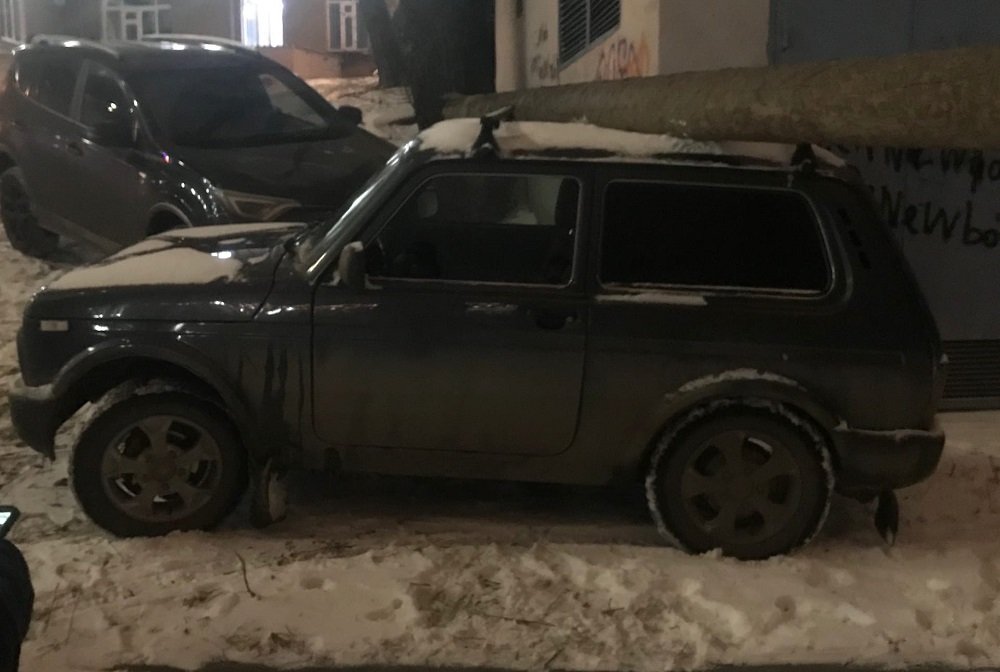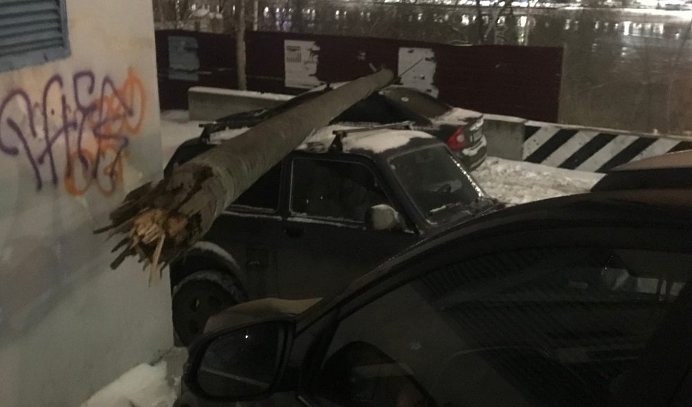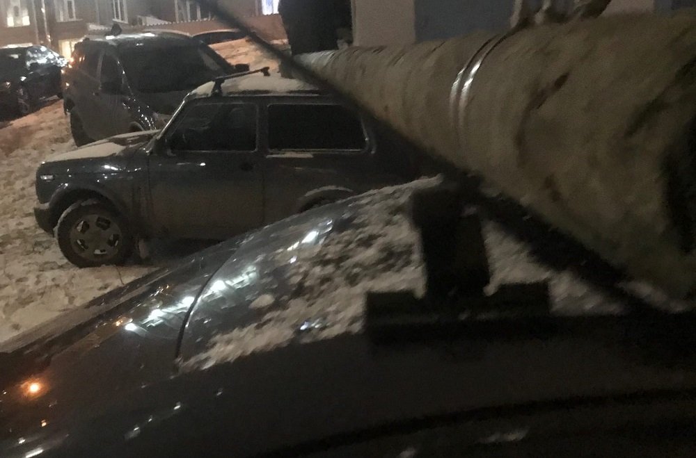 На припаркованный автомобиль рухнул фонарный столб. Машина получила механические повреждения. К счастью на момент ЧП в салоне не было людей.