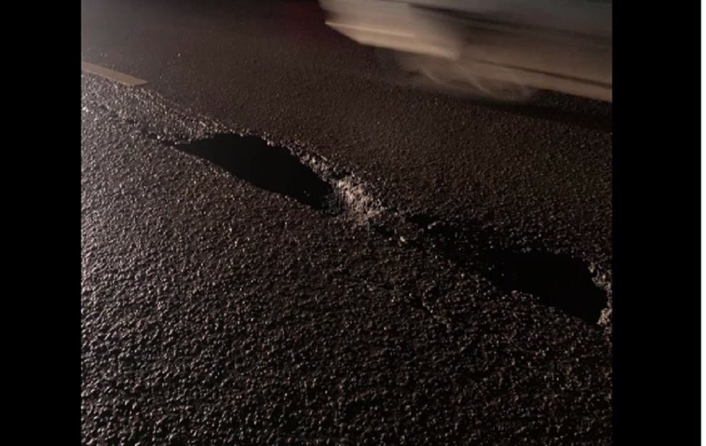 В темноте на дороге, идущей мимо мемориала «Змиевская балка», глубокая яма практически не заметна. Однако, угодив в нее можно серьезно покалечить свой автомобиль.