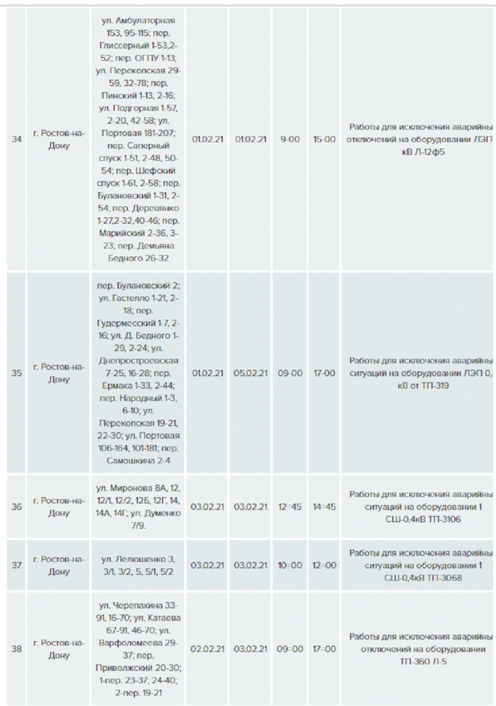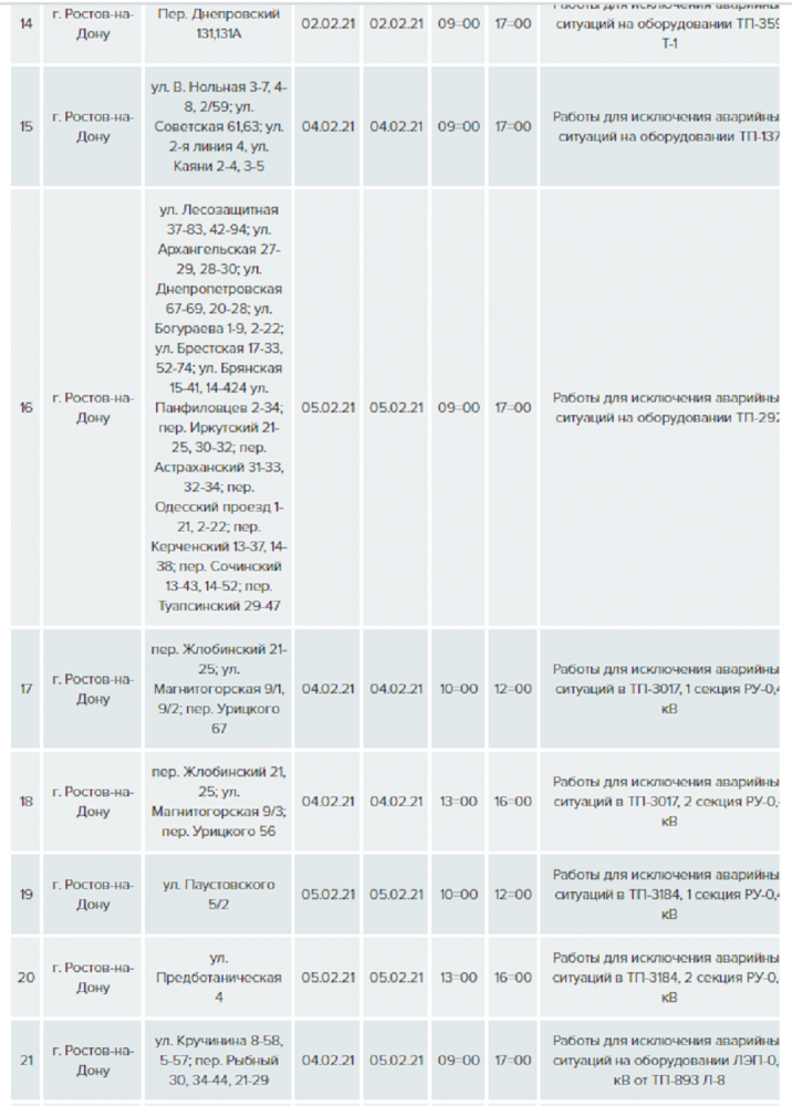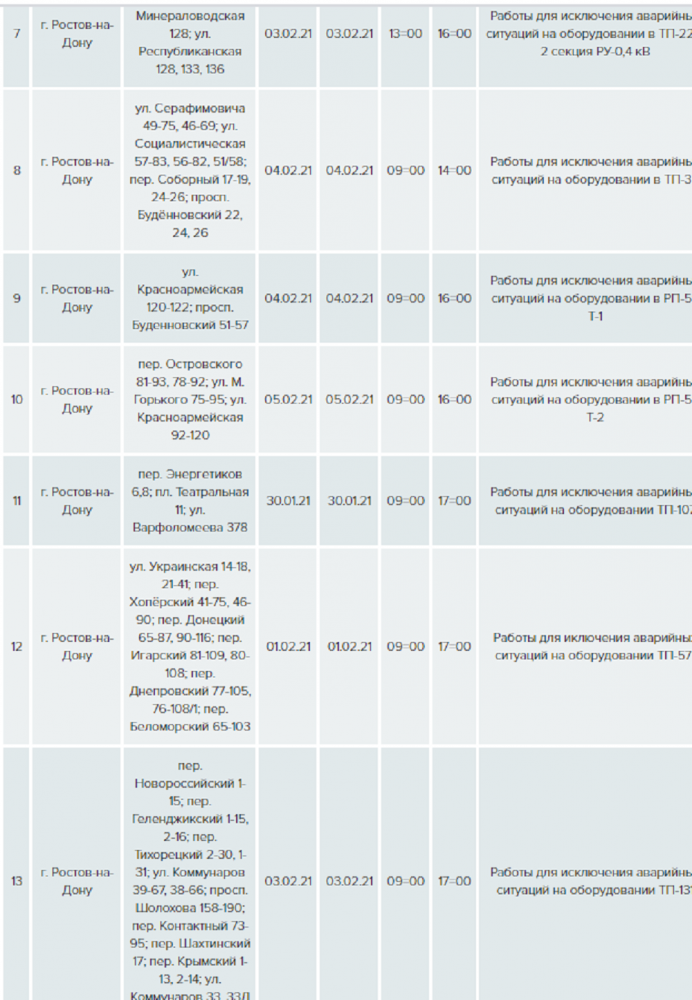 С 1 по 7 февраля в Ростове компания «Донэнерго» запланировала серию работ по предотвращению аварийных ситуаций.