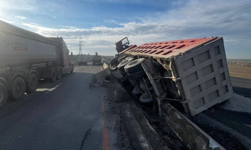 По данным инспекторов, инцидент случился на 991-м километре трассы. Самосвал выполнял дорожные работы, однако водитель допустил наезд на металлическое ограждение. Удар оказался настолько сильным, что машина перевернулась, а часть конструкции ограждения отлетела на проезжую часть, создав дополнительную опасность для других участников движения. Автомобилистам пришлось резко снижать скорость, чтобы объехать разбросанные элементы барьера.