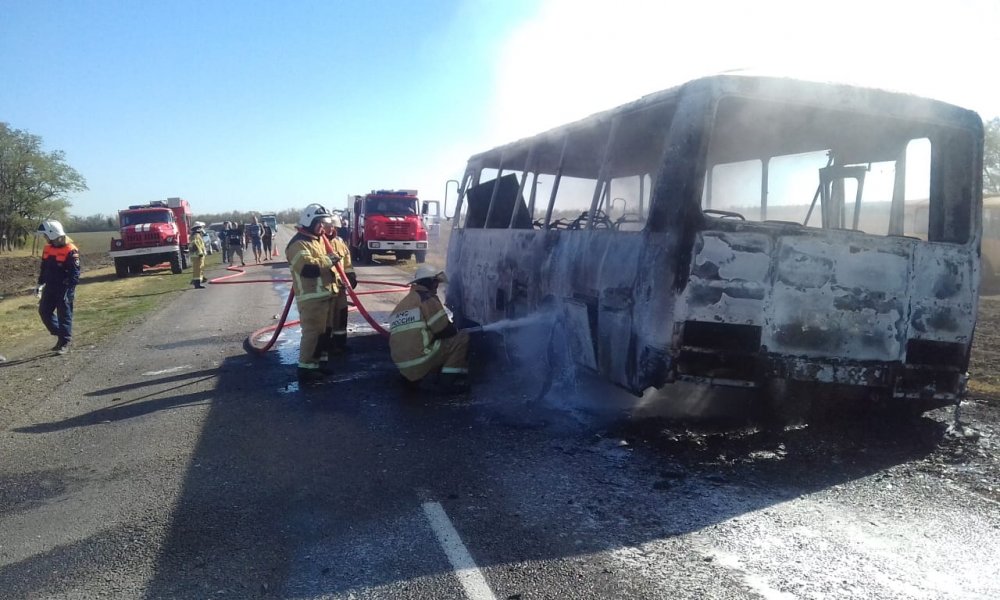 Автобус марки ПАЗ дотла сгорел на трассе Кавалерский – Егорлыкская, ЧП произошло сегодня, 11 сентября, рано утром, об этом сообщает региональное ГУ МЧС.