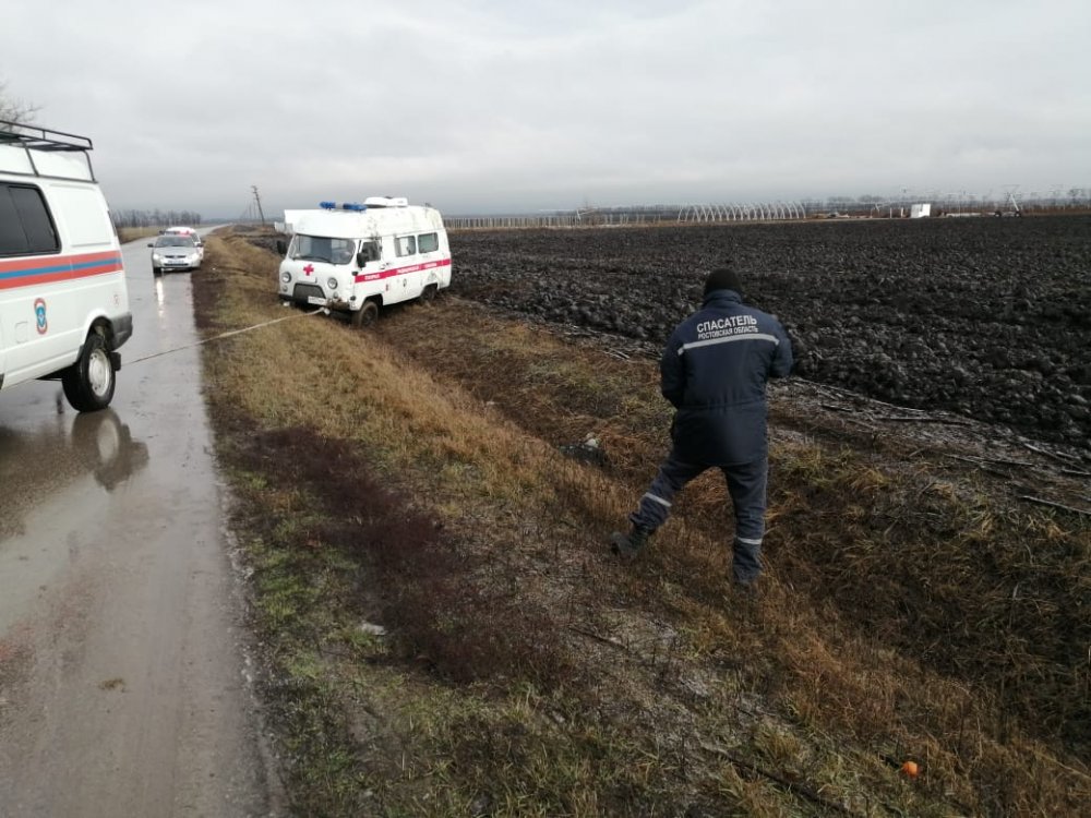 Автомобиль Скорой помощи ехал в больницу в селе Веселое Неклиновского района. Водитель не справился с управлением на скользкой дороге, съехал в кювет и перевернулся на бок. На момент ДТП в салоне автомобиля находились три человека - работники здравоохранения.