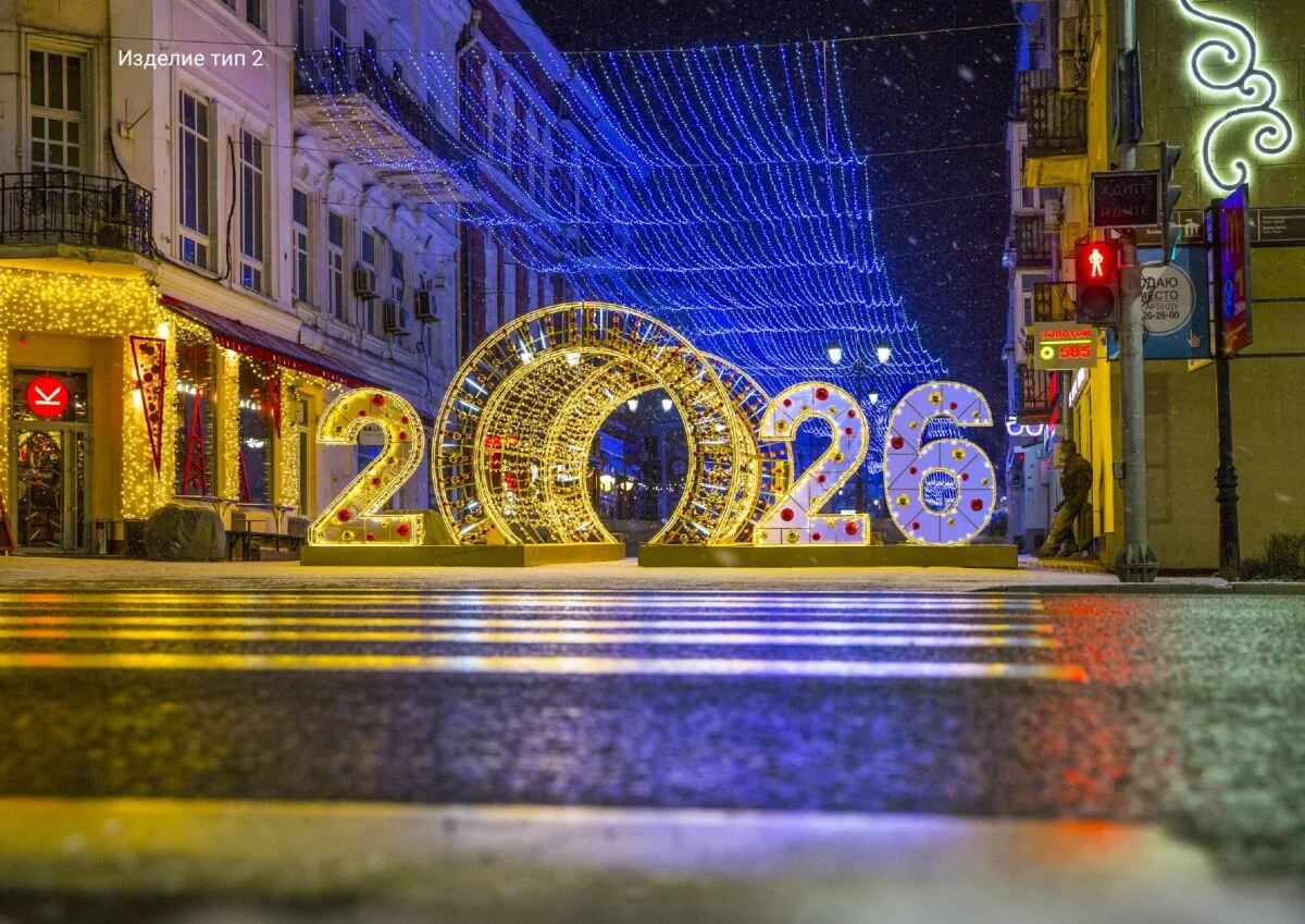 Некоторые элементы оформления потребуют обновления. На Театральной площади у стелы подрядчику необходимо изготовить новую световую арку с цифрой «6», заменив прошлогоднюю «5», чтобы отразить наступающий 2026 год. На углу Соборного переулка и улицы Большой Садовой существующая «5» будет модернизирована с помощью имеющегося оборудования, превратившись в «6».