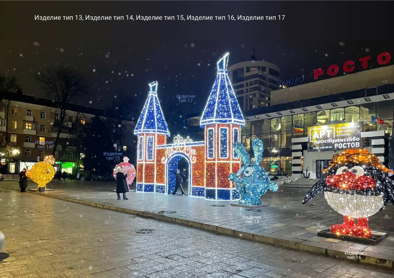 Подрядчику предстоит доставить световые элементы со склада, установить их в назначенных локациях и обеспечить последующую эксплуатацию. Особое внимание уделят площади перед бывшим кинотеатром «Ростов» на Университетском, где вновь появятся фигуры героев мультфильма «Смешарики». Также на пересечении улиц Театральной и Большой Садовой установят светящуюся композицию в форме сердца с надписью «Любимый город».