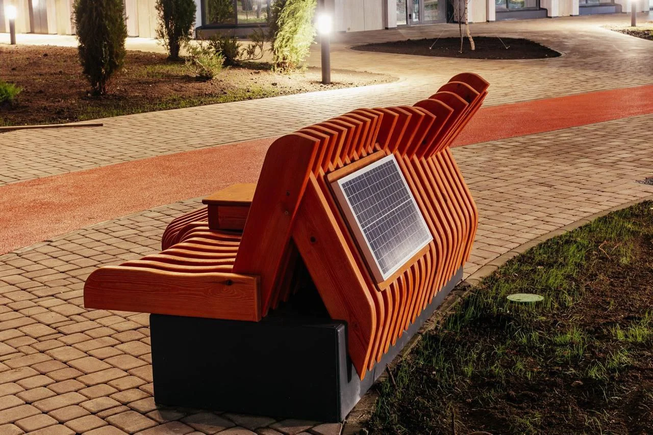 Пристальное внимание при благоустройстве двора было уделено созданию комфортного и технологичного пространства. Главной особенностью дома стали чилаут-зоны с «умными» лавочками с солнечными батареями. Жители смогут отдыхать на свежем воздухе и заряжать мобильные устройства прямо во дворе.