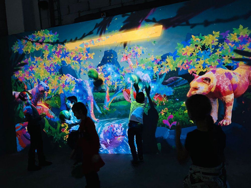 Посетители перенесутся в африканскую саванну и джунгли. Смогут прогуляться по ночному африканскому озеру со светящимися лотосами. Удивятся ярким джунглям, проберутся к водопаду и запустят в африканскую реку своих цветных рыб и крокодилов. Увидят горящие в темной ночи глаза диких животных, очутятся внутри африканского цветка и послушают звуки настоящей Африки.