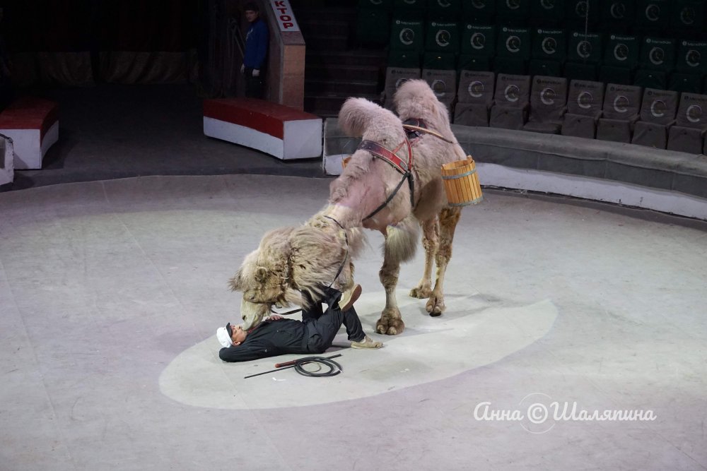 В программе шоу обязательно будут животные - например, невозмутимые верблюды в номере «Белое солнце пустыни». Именно с этими животными ростовским журналистам предложили поучаствовать в номере.