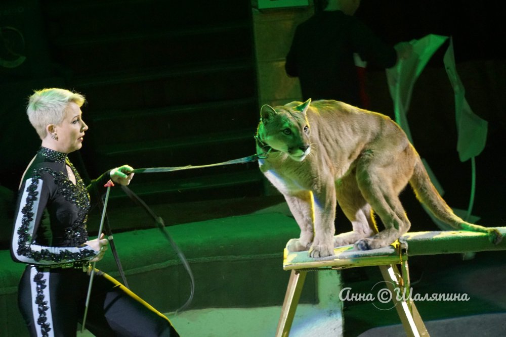 Заслуженный артист России Владимир и Наталья Исайчевы покажут уникальный номер-аттракцион «Друзья» с дрессированными канадскими пумами.