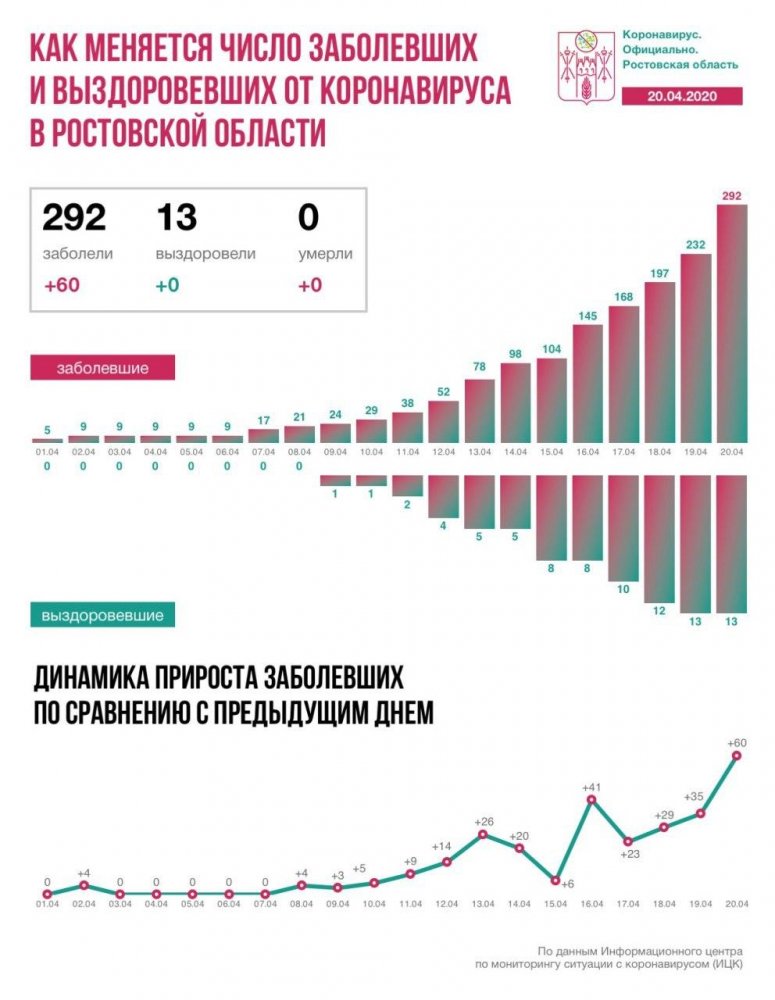 Общее число заболевших составило на сегодняшний день 294 человека из них 13 человек выздоровели.