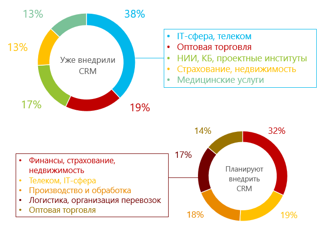 Статистика российских компаний, внедривших или планирующих внедрение CRM, по сферам деятельности
