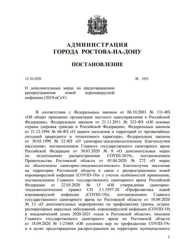 Сегодня вечером, 12 октября, на сайте администрации Ростова-на-Дону было опубликовано постановление с новыми ограничениями из-за коронавируса которые вступают в силу в донской столице с 14 октября 2020г. Власти пошли на данные шаги из-за напряженной ситуации, практически каждый день фиксируются новые антирекорды.