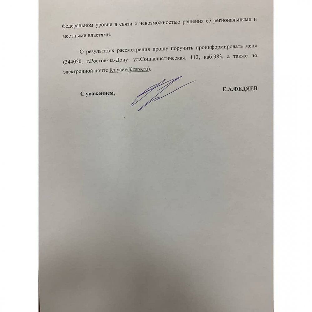 Напомню, в обращении я просил провести проверку соблюдения донскими властями законодательства при принятии решения о закрытии одной из главных транспортных артерий города.
