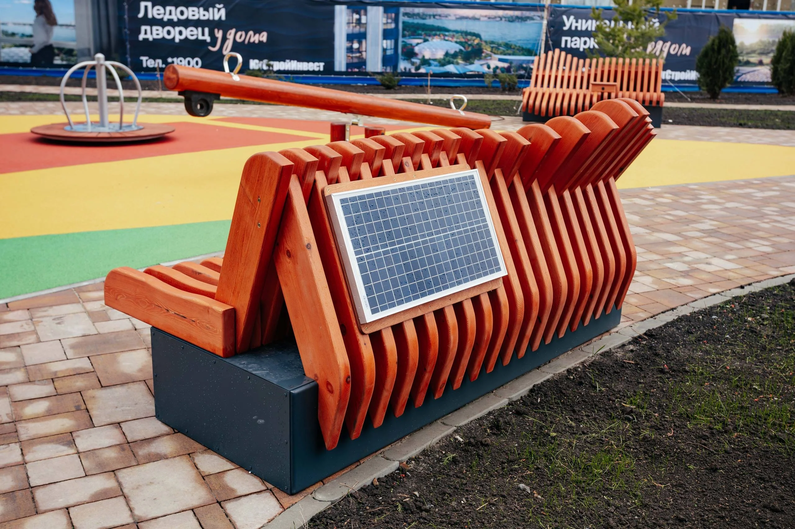 Одной из особенностей жилого дома стали зоны отдыха с «умными» лавочками, работающими на солнечных батареях. Во время прогулки жители смогут не только отдохнуть, но и зарядить мобильные устройства.