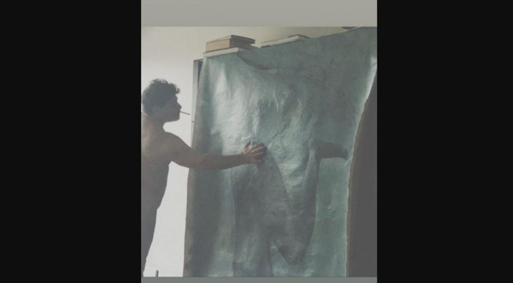 Снимок обнаженного 59-летнего Цекало в сеть слила его супруга – 28-летняя Дарина Эрвин. На кадре голый мужчина стоит у картины своей жены и протягивает руку к холсту, на котором изображен перевернутый человек.