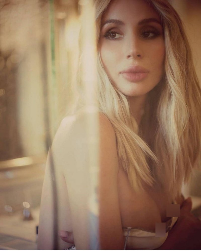 На платье спущены бретели, в следствии чего оказалась оголена грудь. Снимок произвел фурор среди подписчиков.