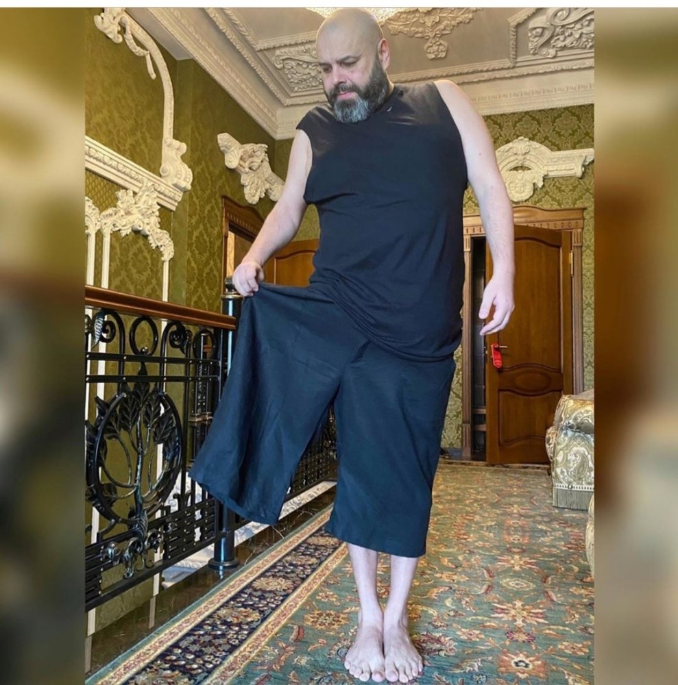 На своей странице в Instagram Фадеев выложил фото, на котором видны результаты его борьбы с лишним весом. На снимке продюсер стоит двумя ногами в одной штанине. Раньше эти шорты он носил стандартным способом.